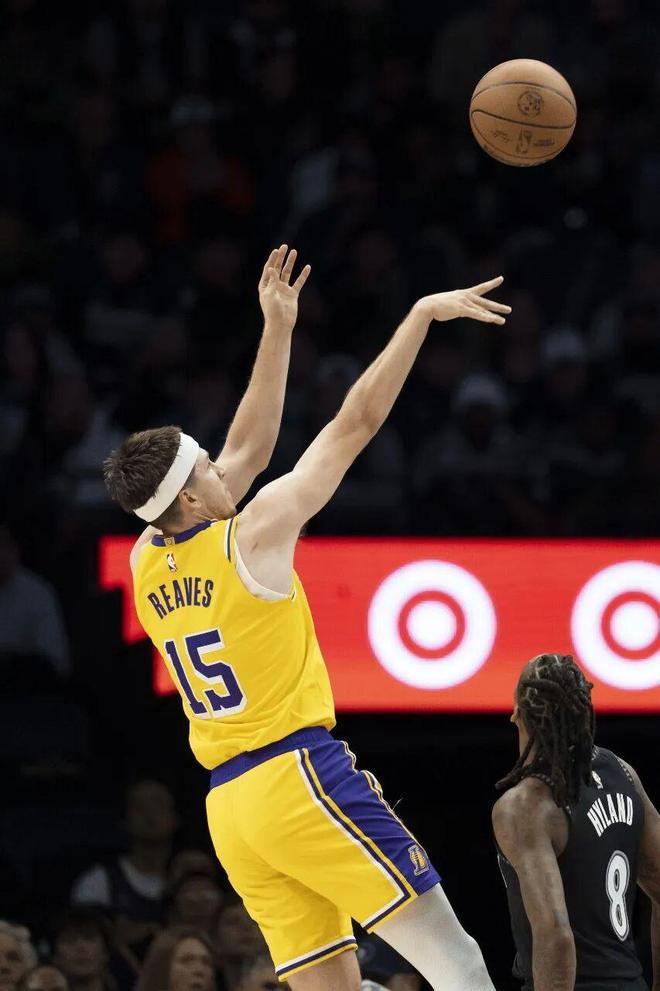 里夫斯和艾顿在本节后段的发挥帮助湖人反超进入更衣室,半场比赛结束,湖人62-58森林狼。
