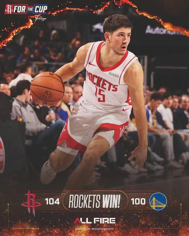 北京时间11月27日,NBA杯小组赛:火箭104-100逆转勇士。杜兰特因家庭事务,连续第二场缺阵。火箭探花谢泼德爆发:首发出战37分钟,25投12中,三分12中4,罚球4中3,狂砍31分9篮板5助攻1抢断2盖帽,正负值+7。