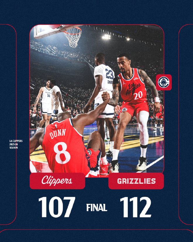 北京时间11月29日,NBA杯快船主场对阵灰熊,快船在最多领先16分情况下,他们下半场攻防崩盘被反超比分,最终快船107-112输给灰熊遭遇3连败,快船近14战12败,灰熊收获2连胜。