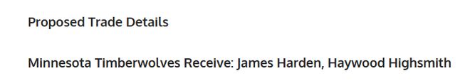 森林狼得到:获得詹姆斯・哈登(快船)、海伍德・海史密斯(快船)