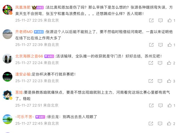 还有不少球迷也纷纷指责此役发挥不佳的球员:“张源、张玉宁、曹永竞、塞尔吉尼奥别回国了,就留越南直接送园区吧!”:“张源在场上的作用是什么,我请问问您。”:“全队唯一的收获就是门将张健智,只有他真正想赢!”:“除了张健智外,其他人但凡有点羞耻心也不会这么踢了,一群没有荣誉感的混子!”